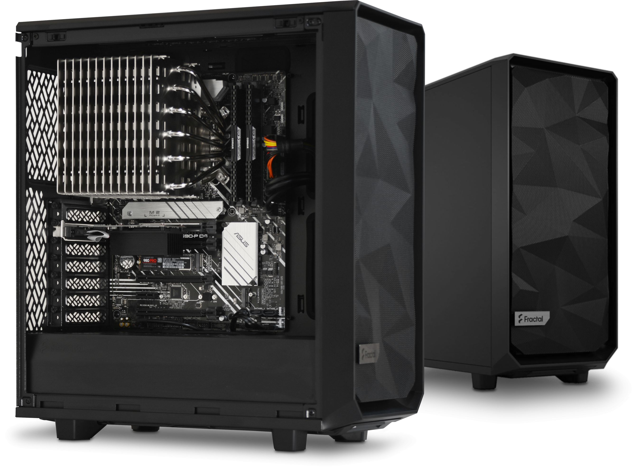 We are delighted to offer the Quiet PC A90 Fanless i17 which is a fully-built ready to go silent computer system that utilises Intel’s latest generation CPUs and an ASUS motherboard. The CPU is silently cooled by either the Nonfan’s IcePipe processor cooler or Noctua’s NH-P1, both of which offer no noise, no dust, no moving parts and no maintenance. The machine can be configured to your exact specification and offers, as you would expect, totally silent operation. The PC is housed in the sophisticated, but compact Fractal Design Meshify or the exquisite North. The large ventilation area at the top of the chassis allows for all of the heat generated by the internal components to naturally dissipate up and out of the chassis.